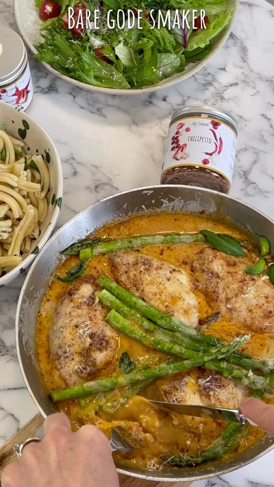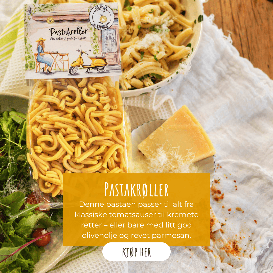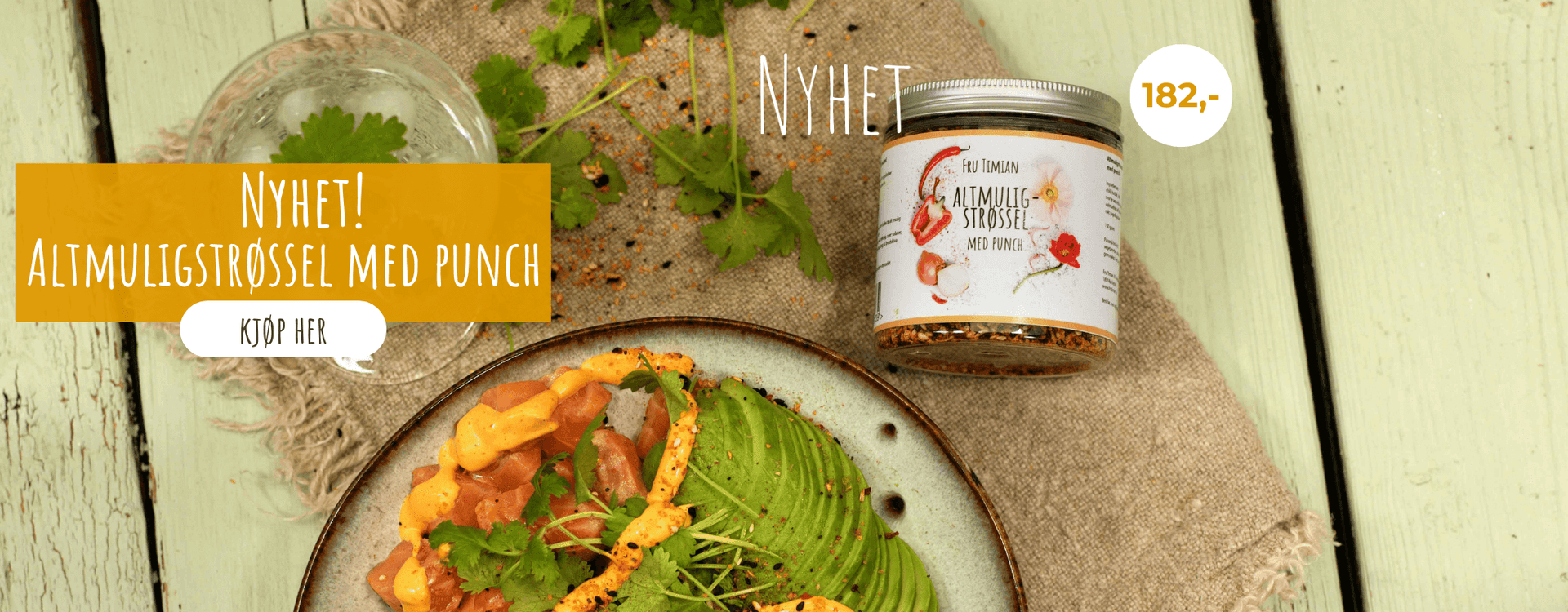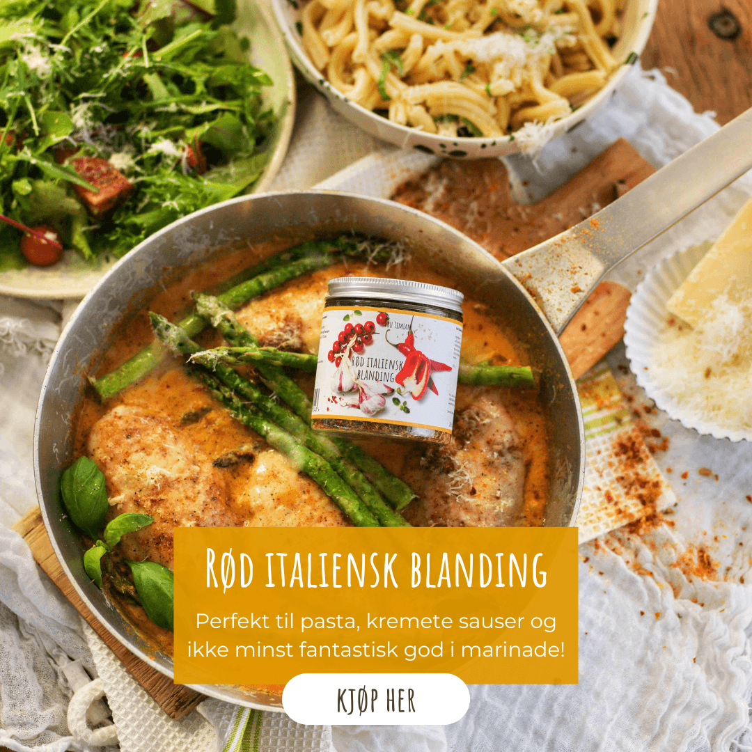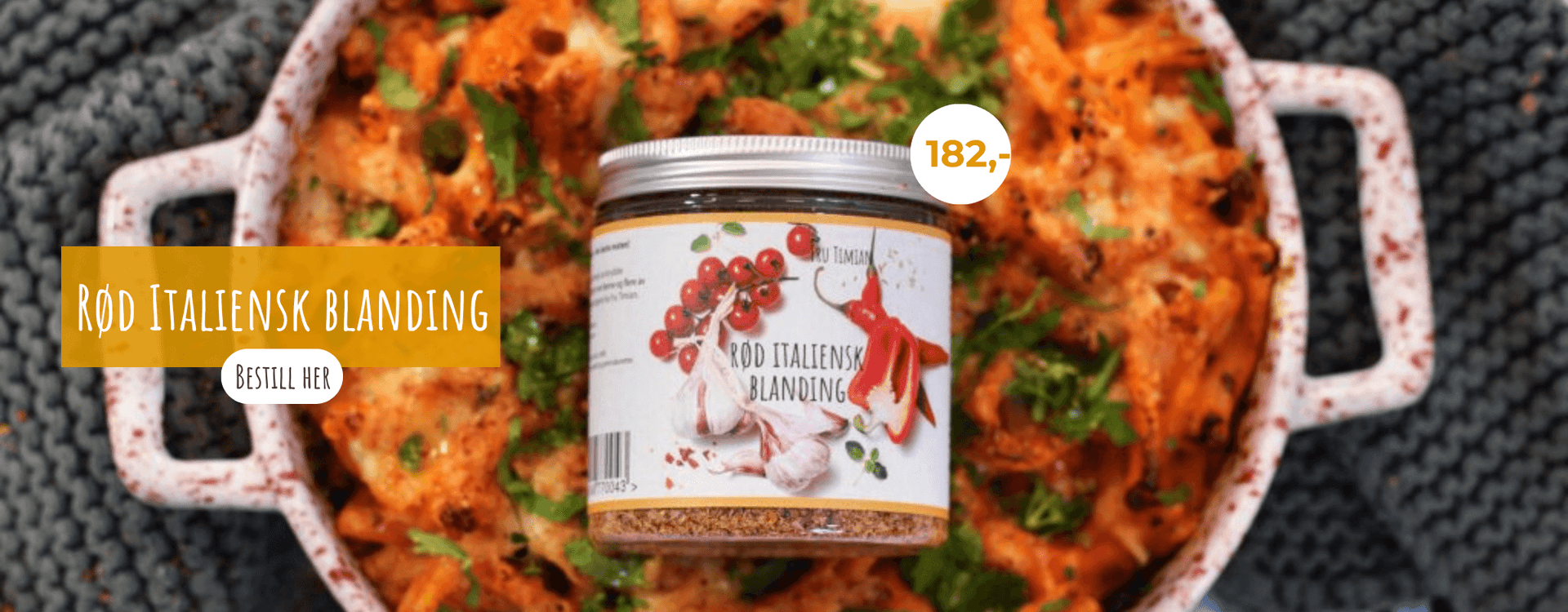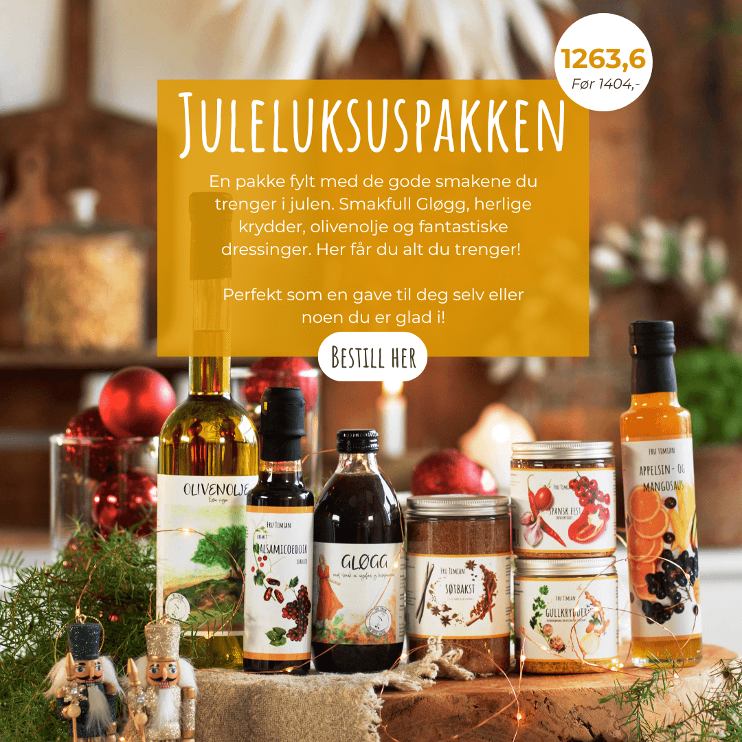 Her i NETTBUTIKKEN finner du SMAKSSERIEN min som består av krydder, buljonger, oljer, pasta, sauser og andre godsaker.