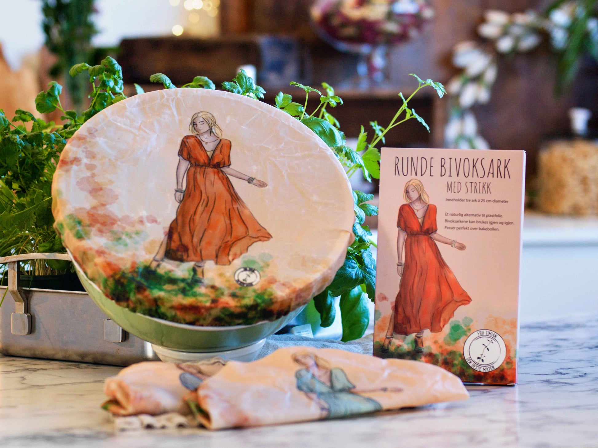 Bivoksarkene er laget av bomull, jojobaolje, harpiks og bivoks. Sammen gjør ingrediensene at maten holder på fuktigheten samtidig som den får puste – så slipper du at maten mugner eller tørker ut.
